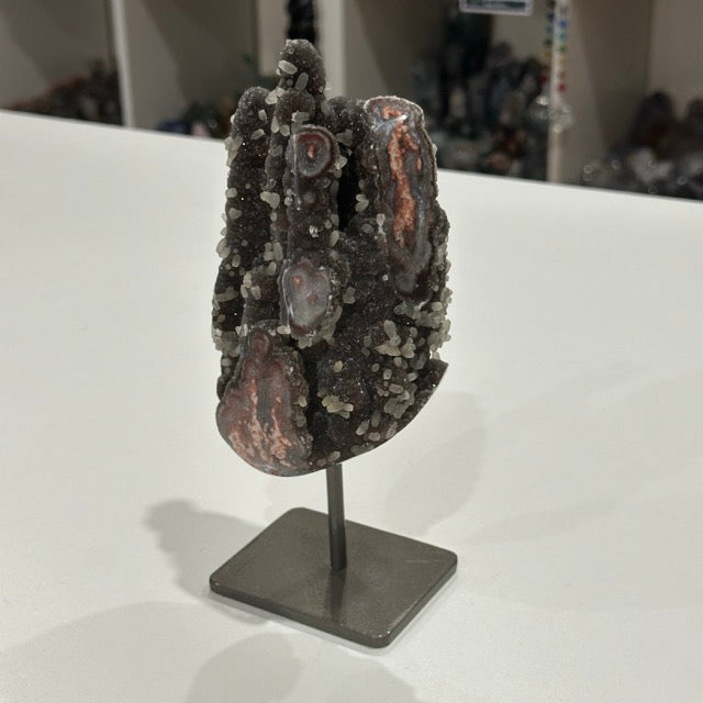 Red Amethyst with Stalactite Eyes and Calcite on Stand | Super Special Collectors Piece